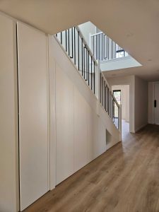 There are various ways we can configure the space under the staircase, sometimes we may leave it open to create a feeling of spaciousness, sometimes we may install a door for a storage area, think Harry potter or sometimes there may be sufficient space that it can be configured to include a small room like a study.