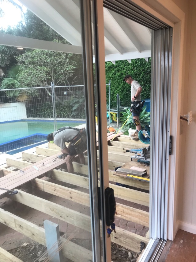 Charles and Lucas laying decking at our Monavale project, treated pine bearers and joist and blackbutt hardwood decking fastened with stainless steel decking screws. This our door entertaining area is going to look absolutely amazing. Creating a beautiful space to enjoy with family and friends around the swimming pool.