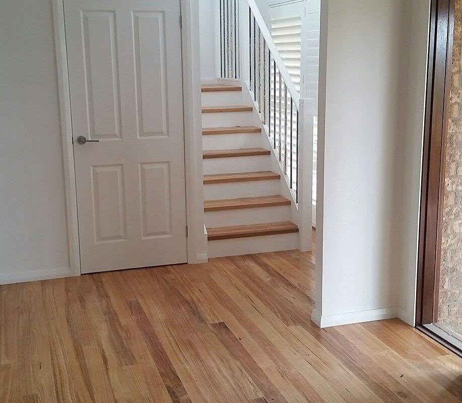 Many of our jobs have either timber balusters or wrought iron balusters. Other options are solid #timber stairs or floor coverings on top of manufactured wood stairs. This job has wrought iron balusters and #timberflooring over manufactured wood stairs risers are painted.