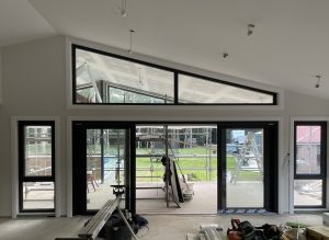 Making effective use of vertical space to emphasize the room’s impressive height, the feature window is elegantly mirrored in the outdoor alfresco area.