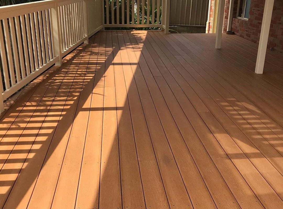 Seen in these photos is a picture of a deck made of a manufactured wood product called ‘Modwood’ the other photo is ‘Merbau’ a hardwood timber.