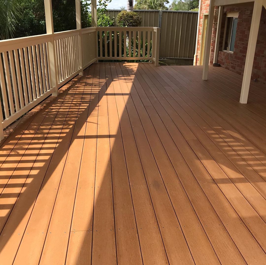 Seen in these photos is a picture of a deck made of a manufactured wood product called ‘Modwood’ the other photo is ‘Merbau’ a hardwood timber.